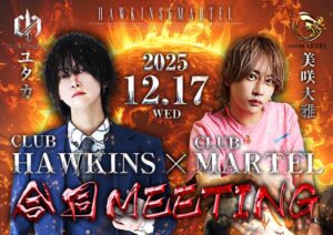 2025 12/17 合同ミーティング MARTEL|マーテル キャストブログ ショップブログ ニュース ブログ ついに本日、マーテル、ホーキンス合同ミーティング‼️ ホーキンスの箱での合同営業となっております✨ 非常に混雑予想されますので、お早めのご連絡よろしくおねがいします👊 本日もご来店お待ちしてます🙇🙇 この記事をシェアする